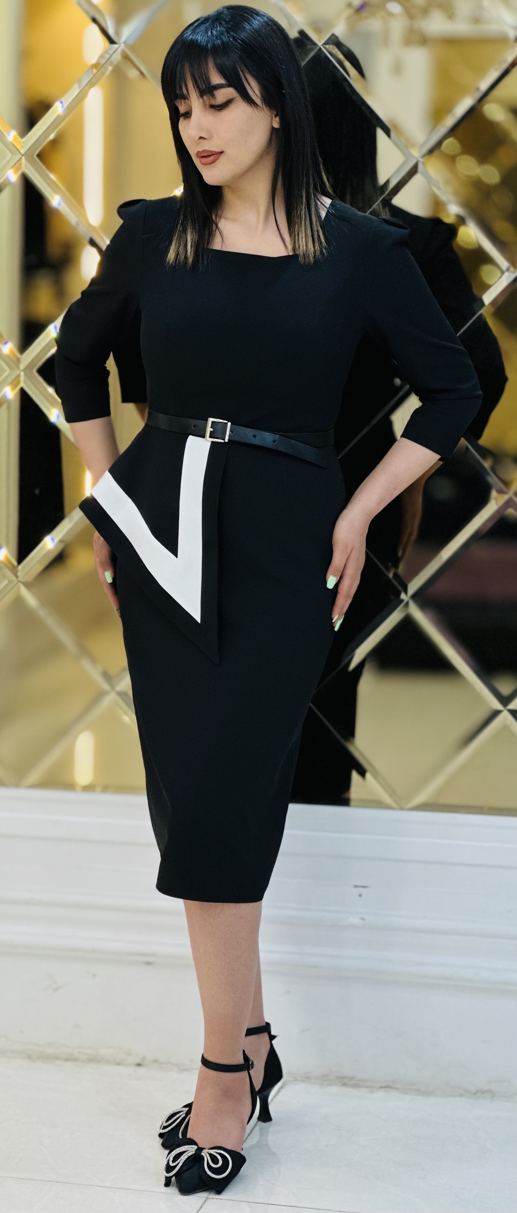 شومیز پهلو پیله نگین دار شلوار کمربنددار دمپا پاکتی قد ۹۰